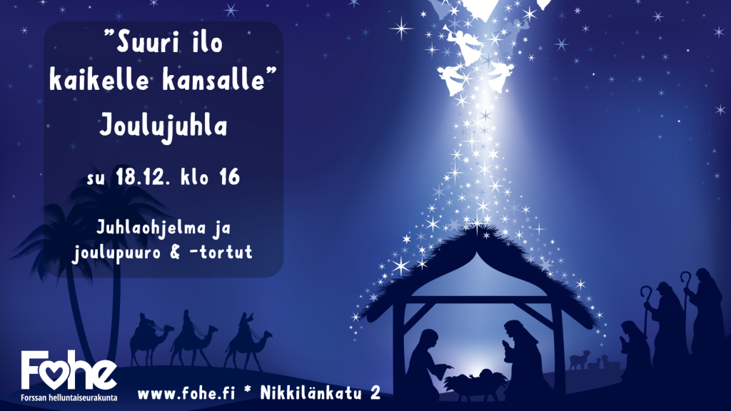 Joulujuhlaan sunnuntaina 18.12. klo 16 ovat kaikki tervetulleita!