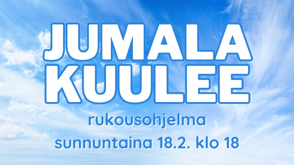 Onko sinulla murheita omassa elämässäsi tai huolta läheisistä? Voit lähettää rukousaiheita tämän tapahtuman kommentteihin jo etukäteen tai lähetyksen aikana tai viestillä numeroon 050-386 9939. Yhdessä saamme sitten pyytää Jumalalta apua näihin asioihin ja kiittää hänen hyvyydestään!